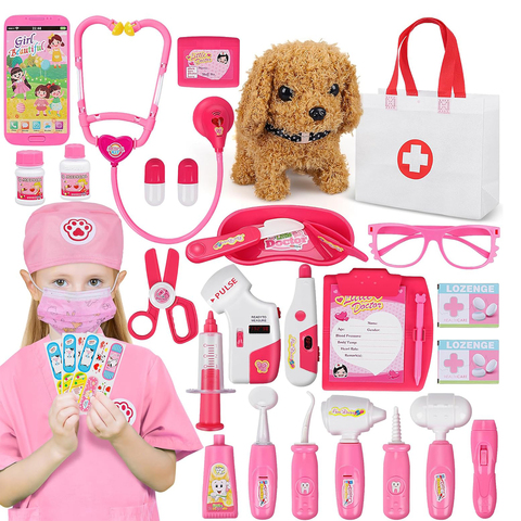 33pcs רופא שיניים ערכת עבור פעוטות-להתלבש תחפושת & להעמיד פנים רופא לשחק עם צעצוע של חתול צעצוע לילדים בנות